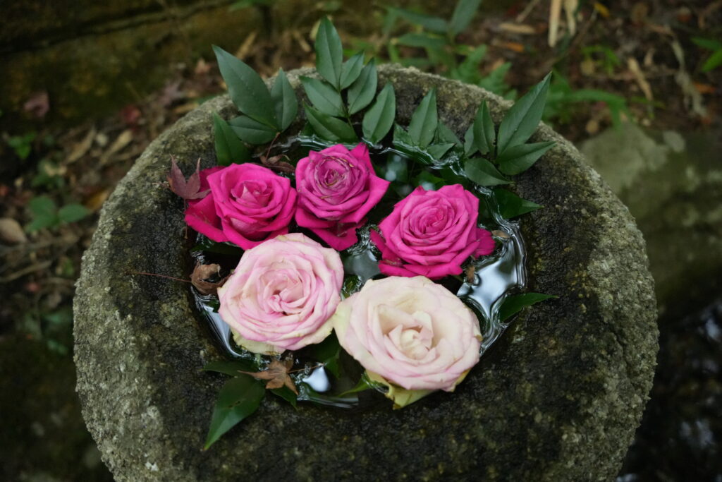 The water basin decorated with floating roses—shown in the photos—added seasonal elegance beyond the autumn leaves themselves.