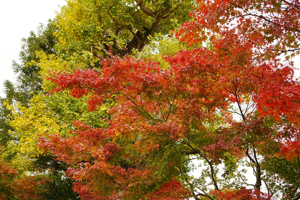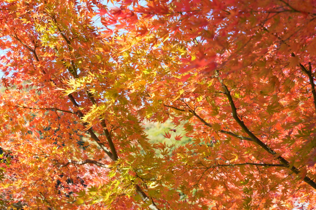 When sunlight passed through the leaves, shades of red, orange, and yellow gently lit up, making me think, “This year’s autumn has its own beauty.”