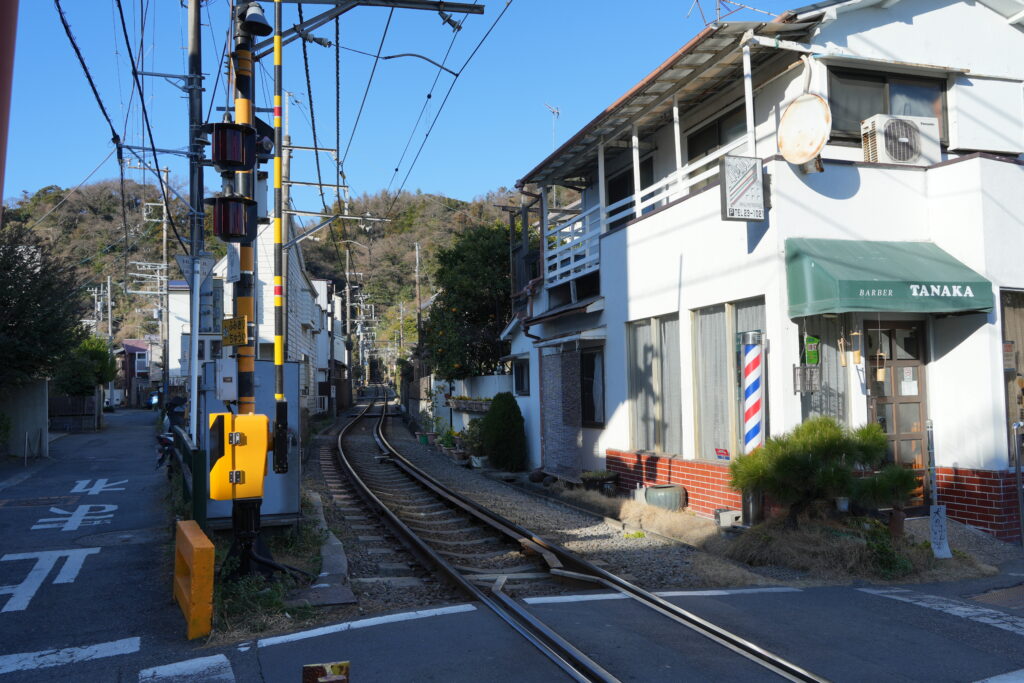 Highlights: The green awning and barber pole of “BARBER TANAKA,” the curved Enoden railway tracks, and the quiet residential area stretching up the hill all create a charming atmosphere. It is an everyday local scene that does not usually appear in tourist guidebooks, yet it feels fresh and cinematic through the lens of the drama.